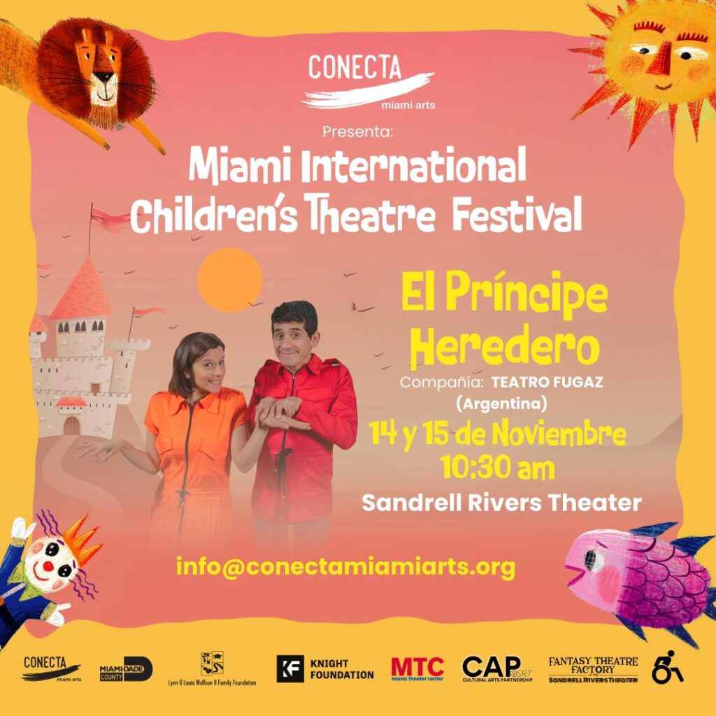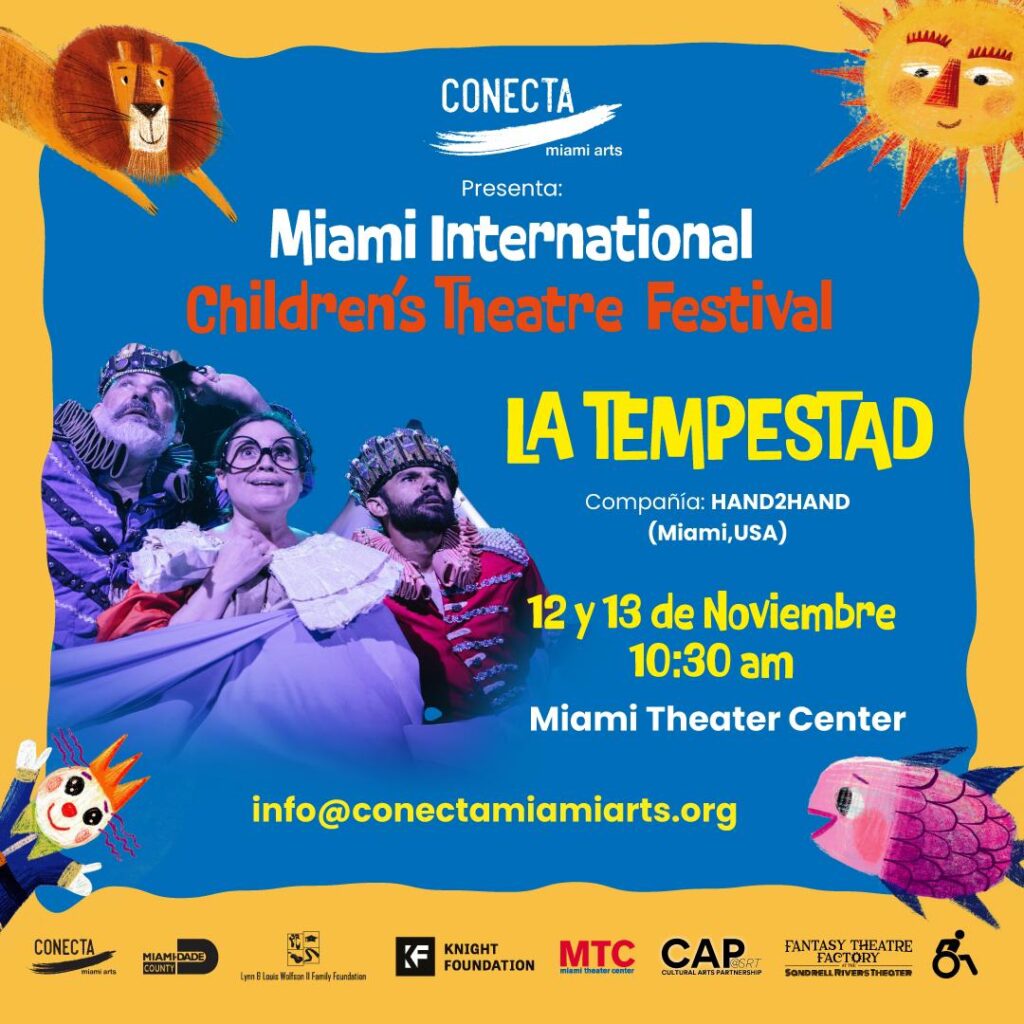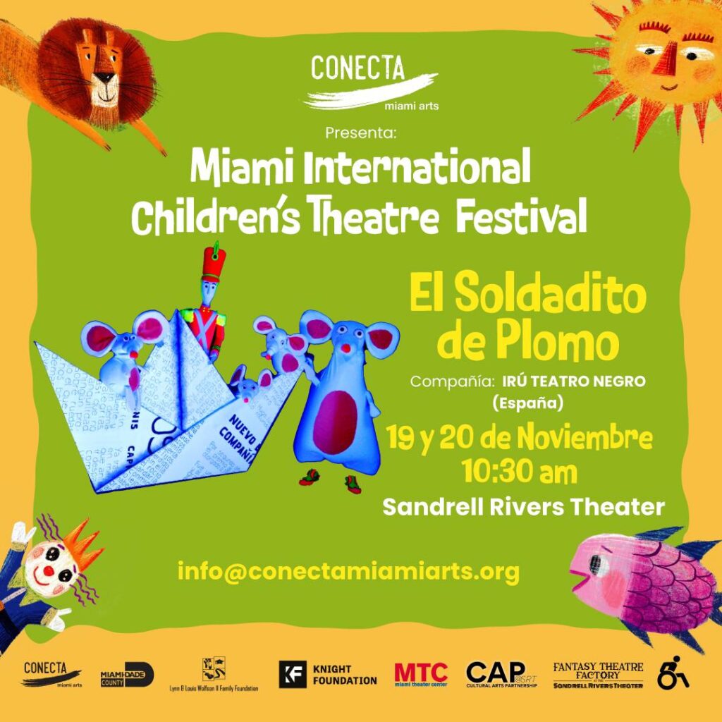 Conecta Miami Arts is producing the first edition of Miami International Children’s Theatre Festival (MICTF), a theatre festival that will present some of the best local and international children’s theatre companies to be enjoyed for FREE by Miami-Dade County Students. The purpose of this program is to develop the culture of going to the theatre at a young age by presenting plays in performing arts centers in diverse neighborhoods of Miami with the hopes of introducing children to various theatre forms and cultural traditions, in a fun and interactive way. Miami is home to renowned cultural festivals such as Miami Book Fair, Art Basel, Miami Film Festival, to name a few; it is time to provide our youth the same opportunity with MICTF!